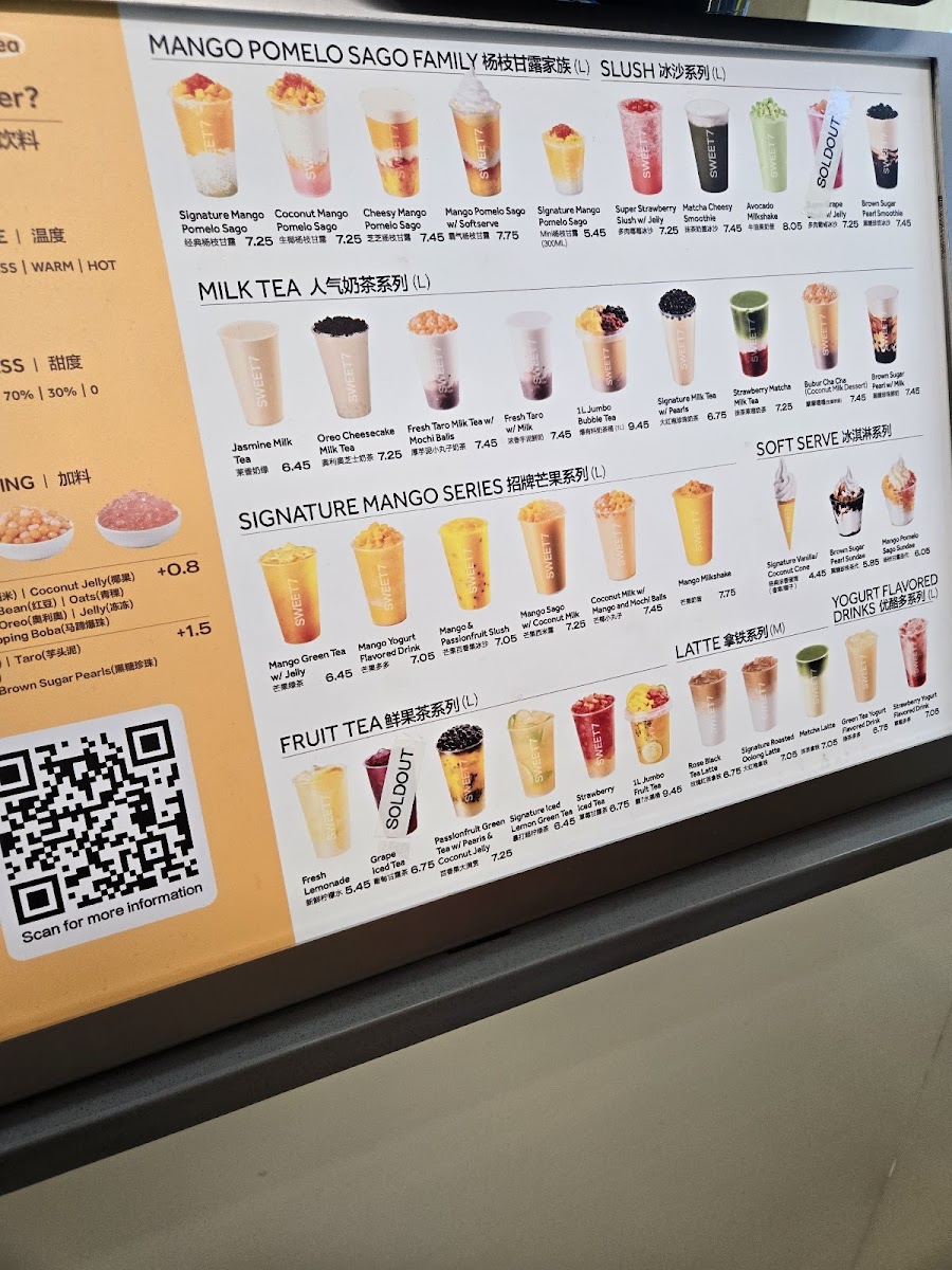 We had the signature mango pomelo sago and the signature milk tea with pearls. We honestly loved our drinks and will definitely be returning for some other things to try off their menu! Definitely recommended!
